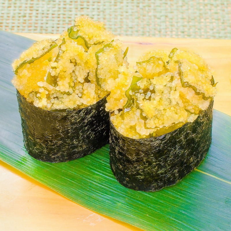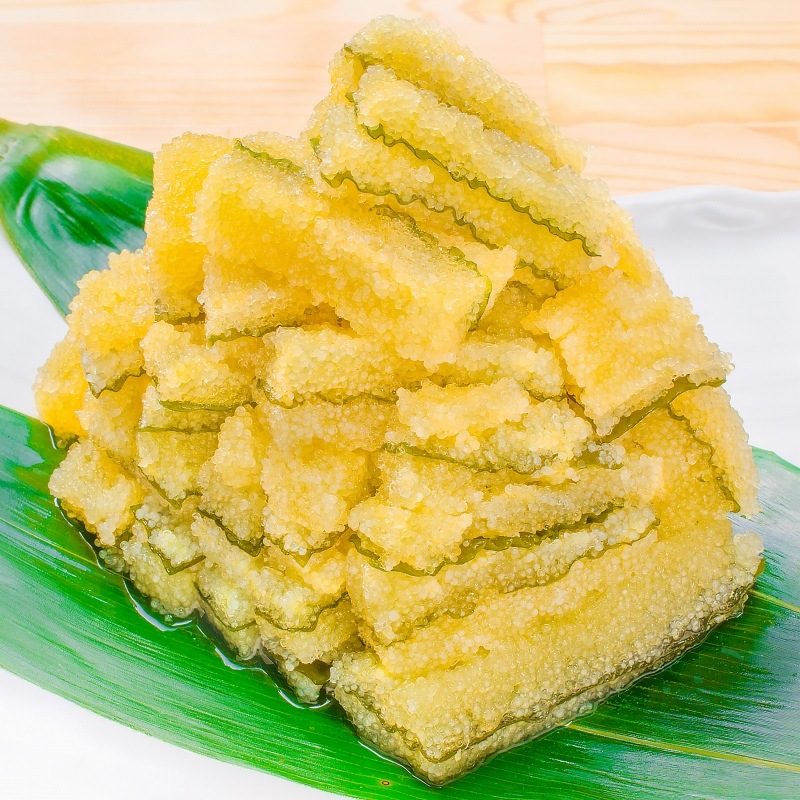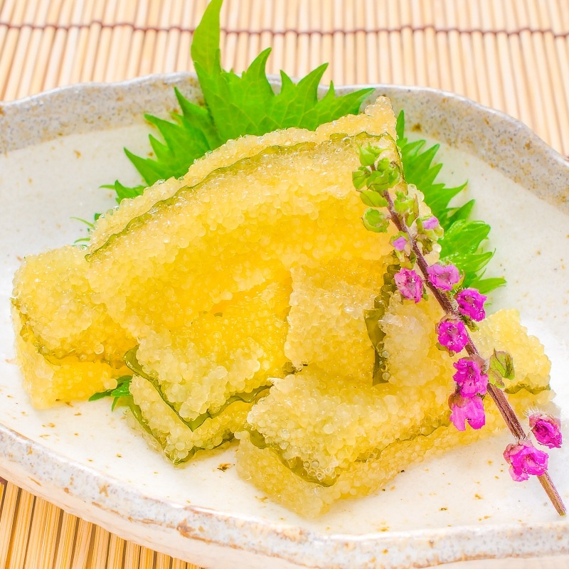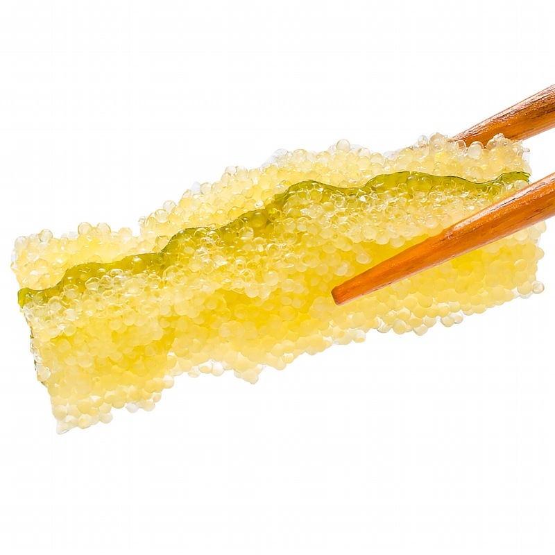 卵(数の子)がぎっしり詰まっていてプチプチとした弾ける粒感がたまりません♪ダシが効いた薄い白醤油味に仕上げてあり上品な味付けでさっぱりしています。数の子に非常に近い食感ですが粒は大きめ★お子様からお年寄りまで安心の食べ易さ。飽きずに食べられるお惣菜で美味です。