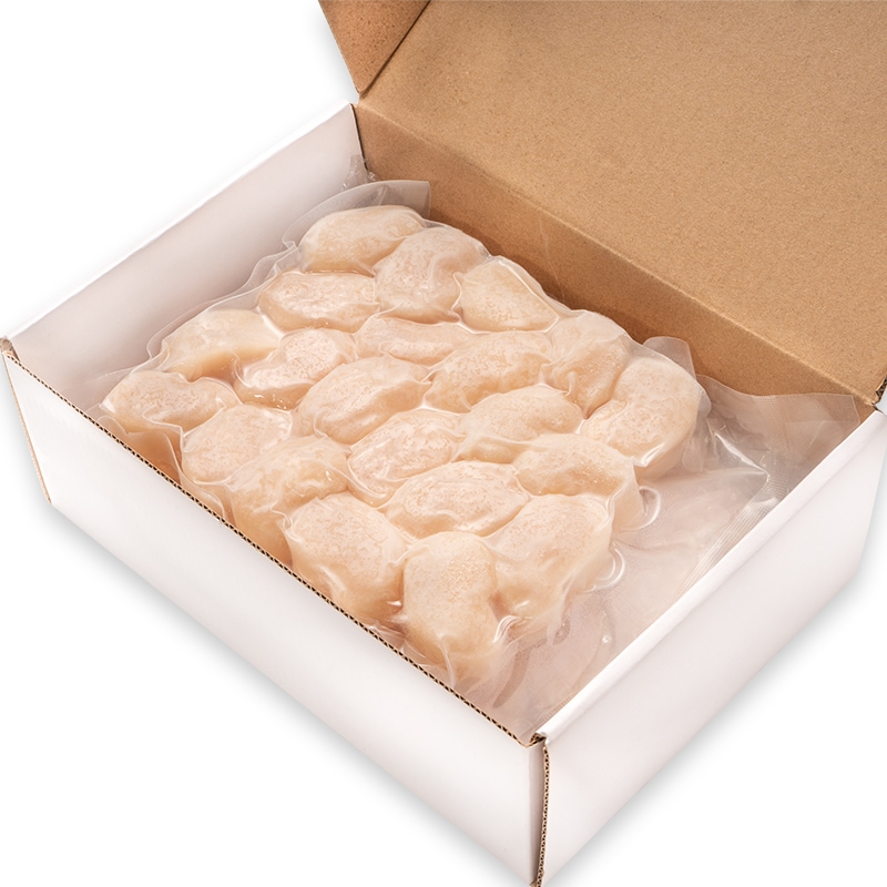 食べる前に解凍する分量を冷凍庫から冷蔵庫へ移し変えるだけです。使用する8~9時間前に袋のまま、または密閉した容器に移し、冷蔵庫でゆっくりともどして下さい。低温解凍することで旨み成分のドリップ流出を防げます。半解凍を目安に食卓へ出すのがオススメです。解凍してそのまま生食用としてもご利用頂けます。